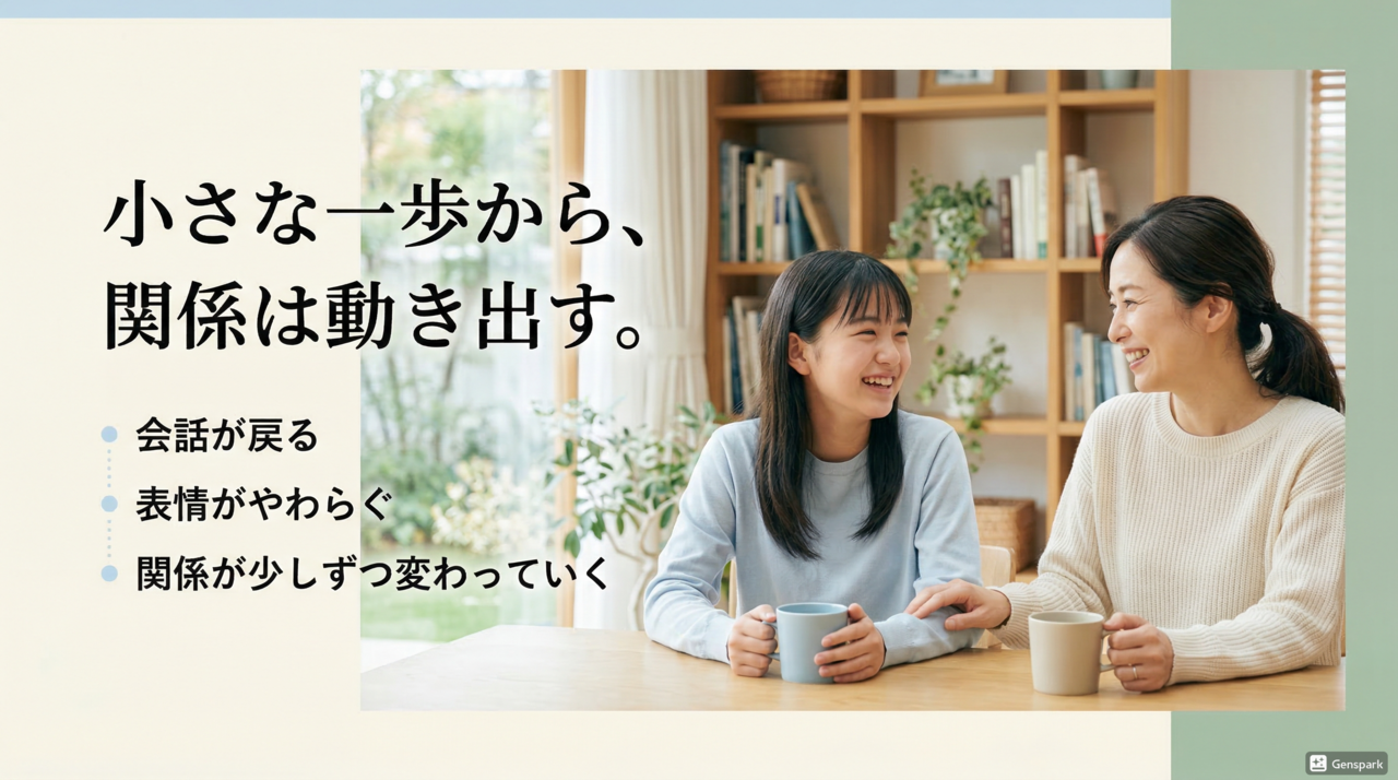 その結果、親子それぞれに変化が生まれ、関係が少しずつやわらいでいきます。